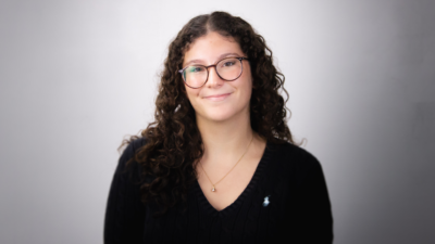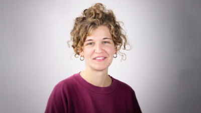 Porträt von Marie Blüml, hat Blonde Haare und lächelt die Kamera an.